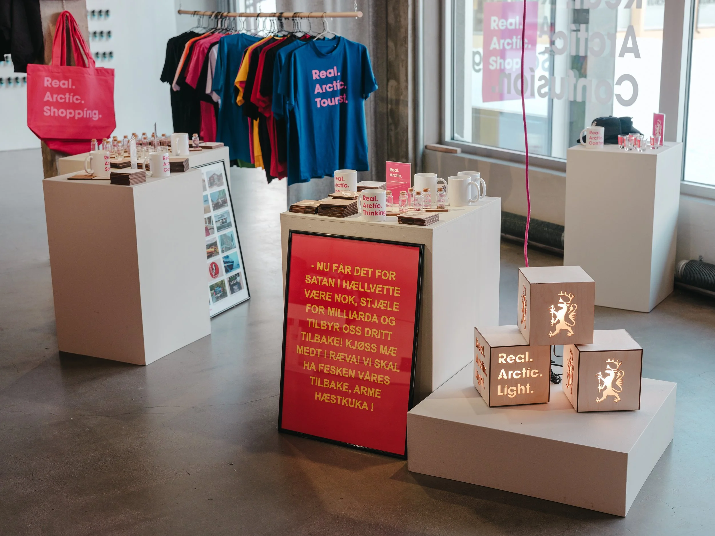 Real. Arctic. is an art and archival project by Jérémie McGowan and Amund Sjølie Sveen that takes many forms. It surfaces across the Arctic as a pop-up tourist shop, an exhibition, a site-specific installation, a performance, and/or a physical and digital archive. Collectively and individually, these projects question, represent and (re)imagine the Arctic.
