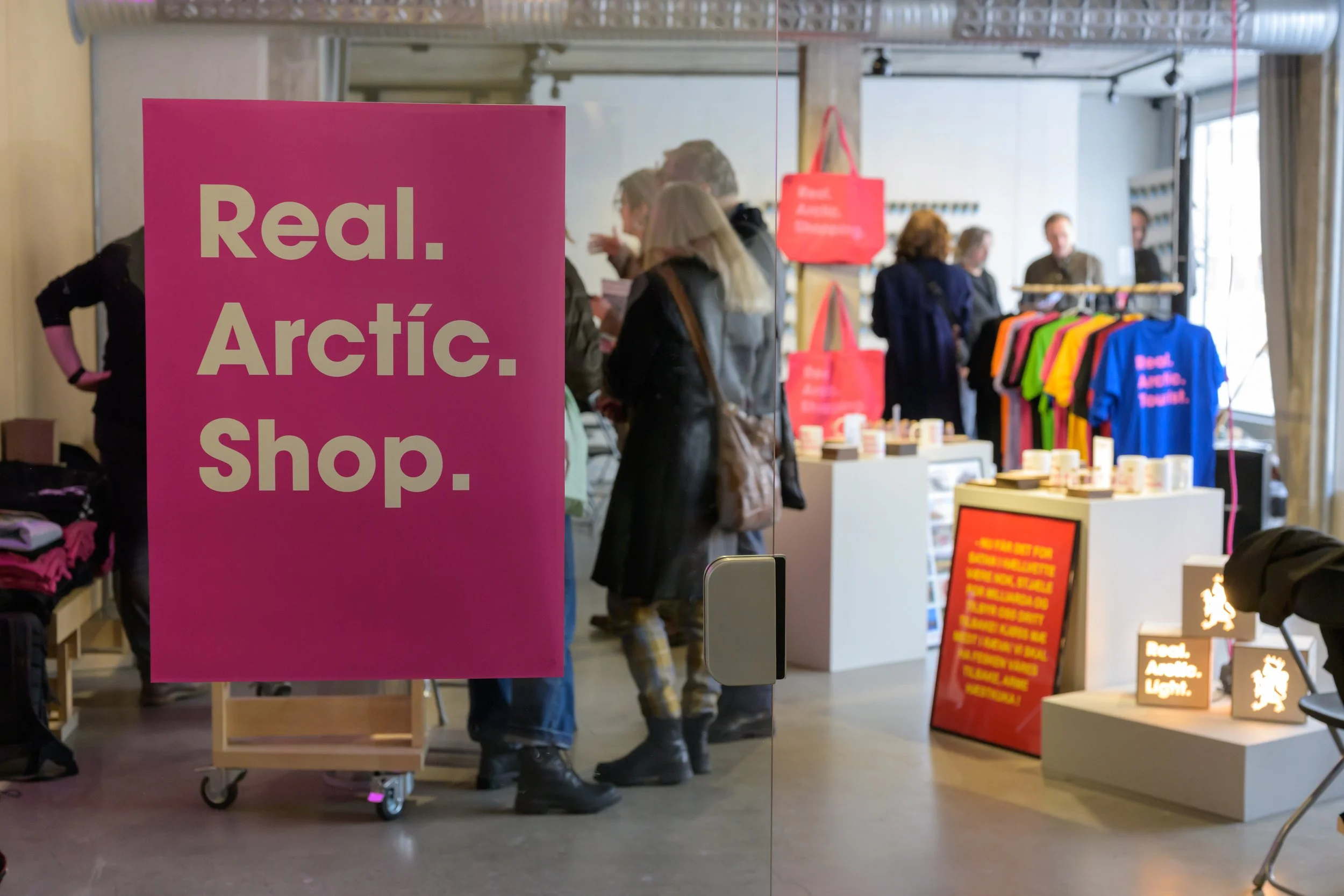 Real. Arctic. began with a large-scale wall installation, titled Arctic Armpit – version 1, commissioned by Nuuk Art Museum, Kalaallit Nunaat (Greenland) for the Nuuk Nordic Culture Festival (May – October 2023). This was followed by the first major manifestation of the project: a fully operational souvenir shop called Arctic [Un]Limited, centrally located in the main pedestrian street of downtown Romsa / Tromsø, Norway (January – June 2024). Funded in part by Kulturrådet – Arts Council Norway and KORO – Public Art Norway, this 75m2 shop was open for four and a half months, attracting over 2,000 visitors. It had an array of products for sale, an extensive program of seminars, concerts, performances and other events, and was an arena for a continuous meet the artist / artist talk situation with its visitors – including locals, international guests, art audiences, and souvenir-shopping tourists.